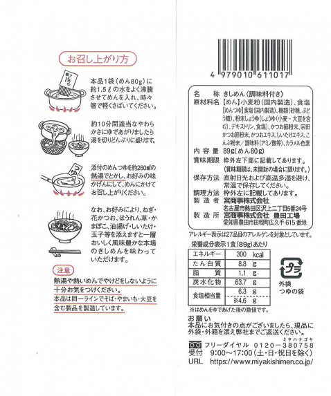 宮きしめんが日本で初めて技術開発した折りたたみ式乾麺は、麺の中に小麦粉のうまみがたっぷり含まれています。