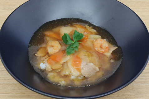 えび、豚肉、野菜が入った五目あんかけです。