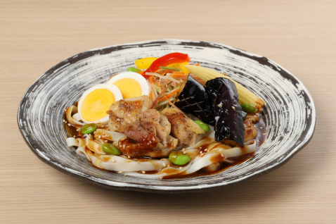 冷やした麺にお好みの野菜や鶏肉、チャーシューなどを添えてお召し上がりください。
