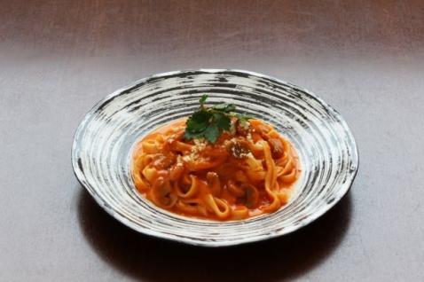 半生えびトマトクリームきしめん(レトルトソース)×1人前