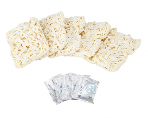 冷凍麺にはめずらしい、原材料がでんぷん等の混ぜ物なしの小麦粉100%。多加水で作った打ちたて麺をゆであげ後瞬時に冷凍しました。釜揚げ状態のおいしさがそのままとじこめられています。