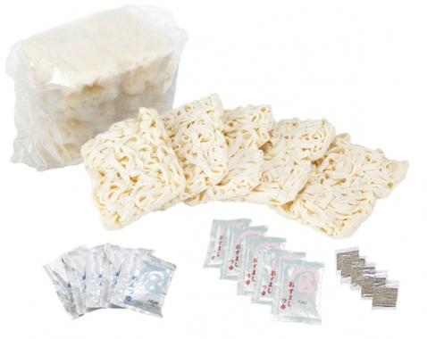 冷凍麺にはめずらしい、原材料がでんぷん等の混ぜ物なしの小麦粉100%。多加水で作った打ちたて麺をゆであげ後瞬時に冷凍しました。釜揚げ状態のおいしさがそのままとじこめられています。