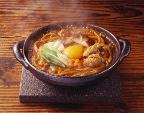 少し細めのおうどんは、煮込むことでみそがしっかりしみ込み、